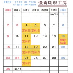2025年11月の定休日のお知らせ